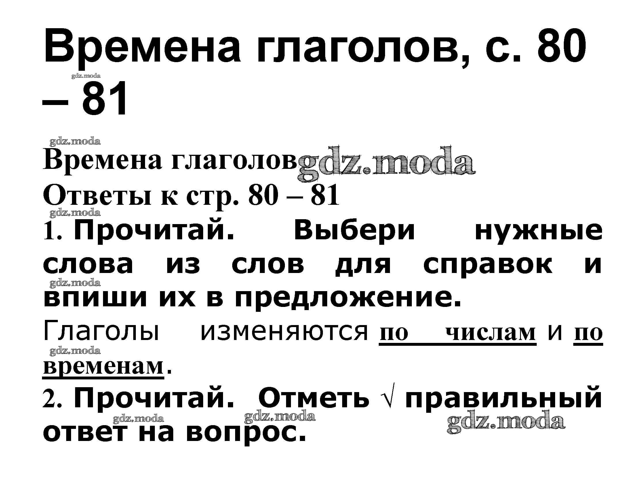 ГДЗ решение к заданию № Времена глаголов стр. 80 – 81 Русский язык 3 класс проверочные работы Канакина В.П. Просвещение 2018 ФГОС бесплатно на гдз.мода!