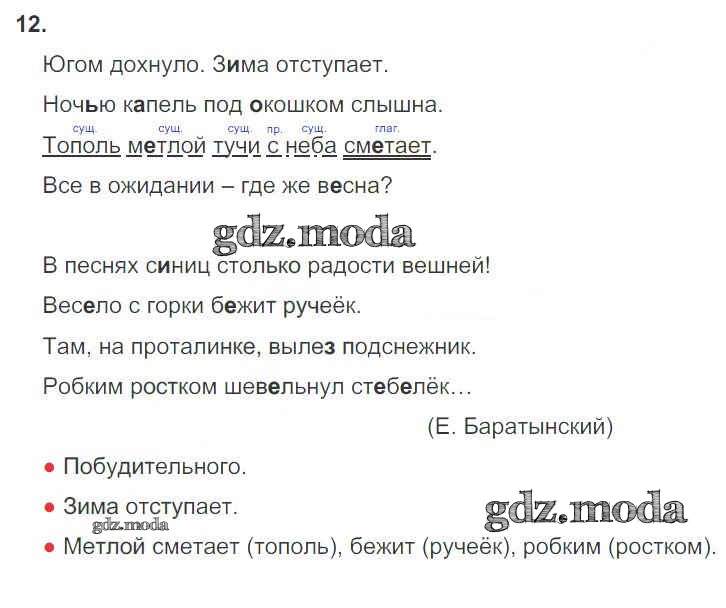 ГДЗ решение к заданию № 12 Русский язык 3 класс рабочая тетрадь Песняева Н.А. Просвещение 2017 Часть 1, Часть 2 ФГОС бесплатно на гдз.мода!