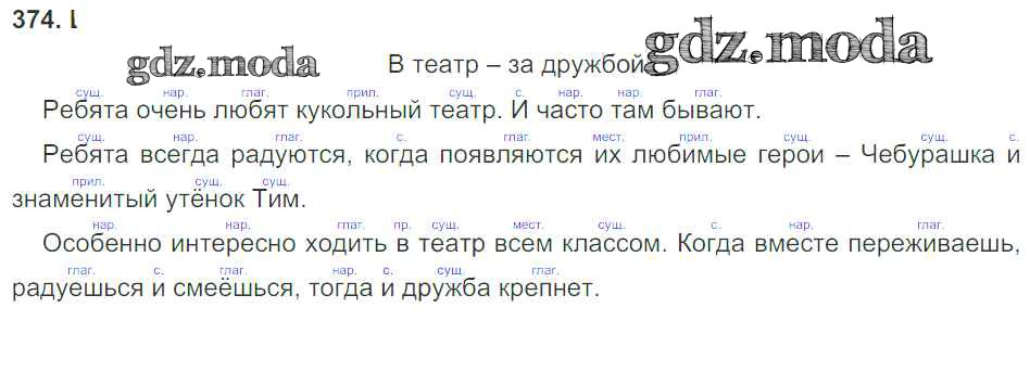 ГДЗ решение к заданию № 374 Русский язык 3 класс Рамзаева Т.Г. Дрофа 2016 Часть 1, Часть 2 ФГОС бесплатно на гдз.мода!