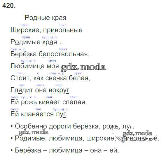 ГДЗ решение к заданию № 420 Русский язык 3 класс Рамзаева Т.Г. Дрофа 2016 Часть 1, Часть 2 ФГОС бесплатно на гдз.мода!