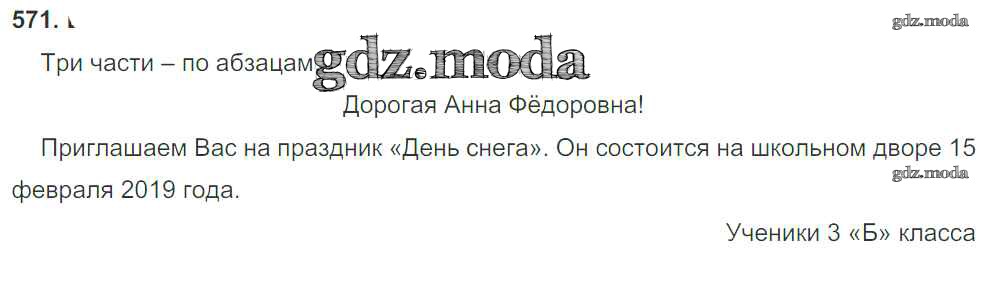 ГДЗ решение к заданию № 571 Русский язык 3 класс Рамзаева Т.Г. Дрофа 2016 Часть 1, Часть 2 ФГОС бесплатно на гдз.мода!