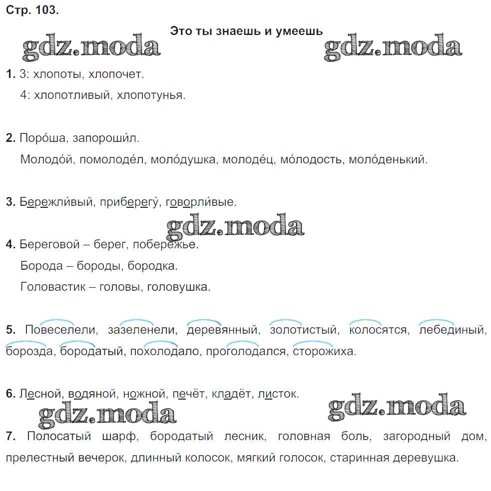 ОТВЕТ на задание № стр.103 Учебник по Русскому языку 3 класс Бунеев Школа 2100