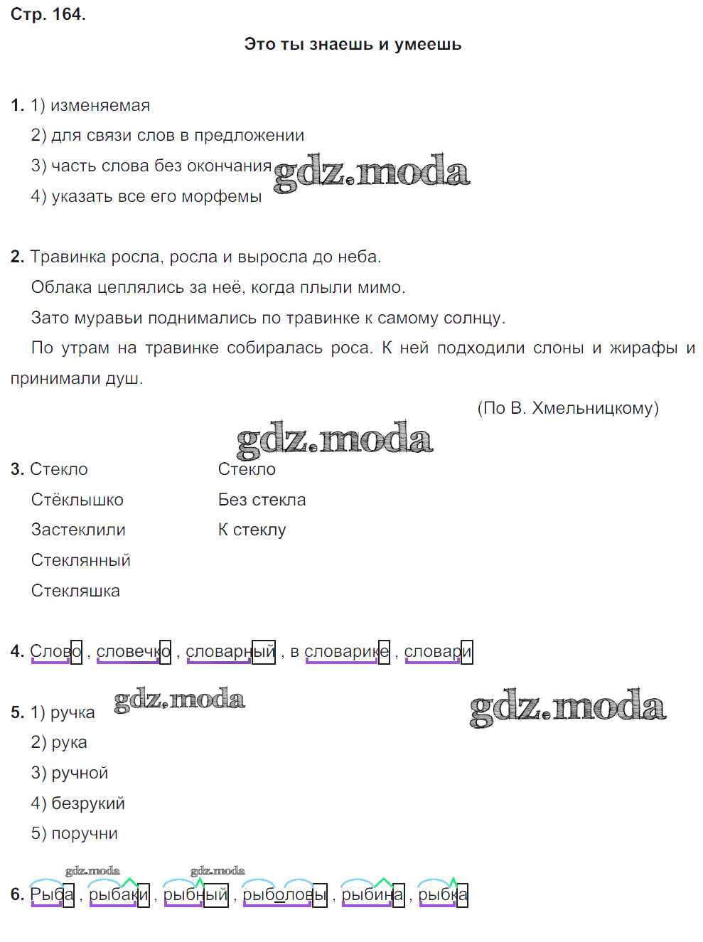 ОТВЕТ на задание № стр.164 Учебник по Русскому языку 3 класс Бунеев Школа 2100