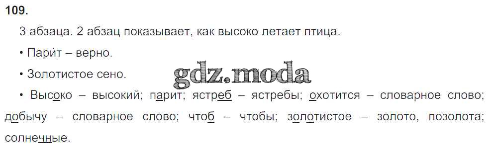 ГДЗ решение к заданию № 109 Русский язык 3 класс Бунеев Р.Н. Баласс 2015 Часть 1, Часть 2 ФГОС бесплатно на гдз.мода!