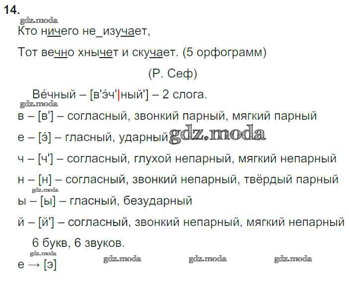 ГДЗ решение к заданию № 14 Русский язык 3 класс Бунеев Р.Н. Баласс 2015 Часть 1, Часть 2 ФГОС бесплатно на гдз.мода!