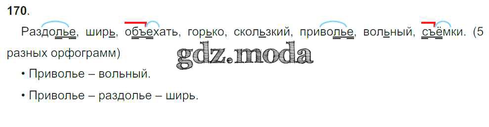 ГДЗ решение к заданию № 170 Русский язык 3 класс Бунеев Р.Н. Баласс 2015 Часть 1, Часть 2 ФГОС бесплатно на гдз.мода!