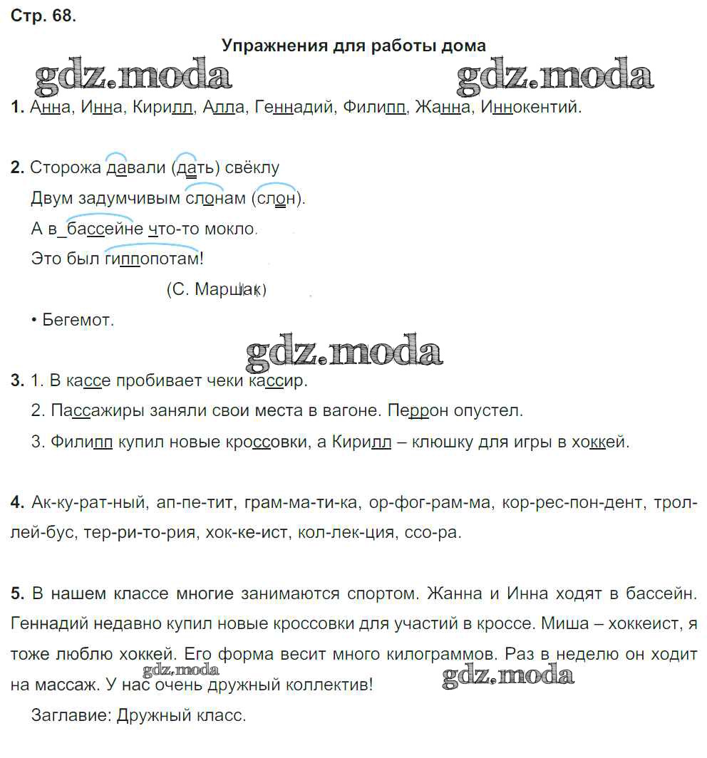 ОТВЕТ на задание № стр.68 Учебник по Русскому языку 3 класс Бунеев Школа 2100