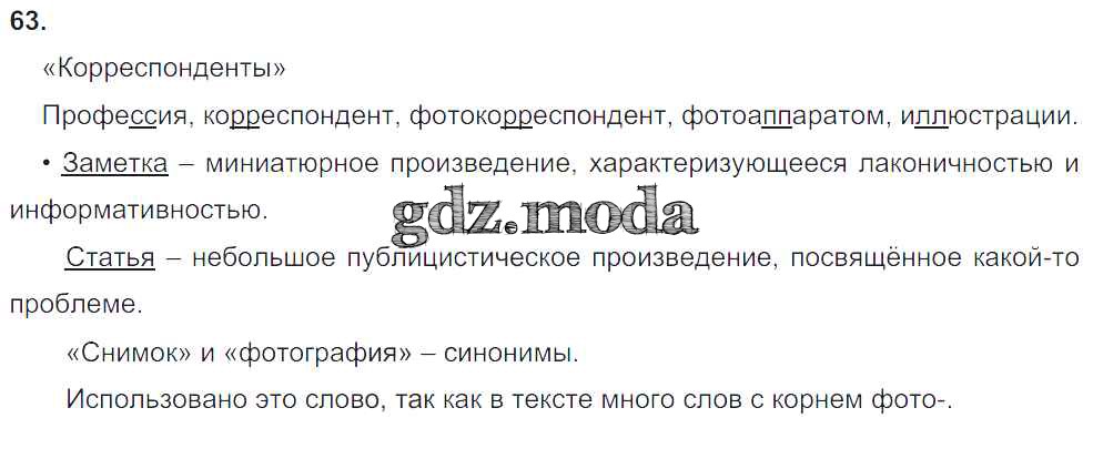 ГДЗ решение к заданию № 63 Русский язык 3 класс Бунеев Р.Н. Баласс 2015 Часть 1, Часть 2 ФГОС бесплатно на гдз.мода!