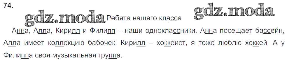 ГДЗ решение к заданию № 74 Русский язык 3 класс Бунеев Р.Н. Баласс 2015 Часть 1, Часть 2 ФГОС бесплатно на гдз.мода!