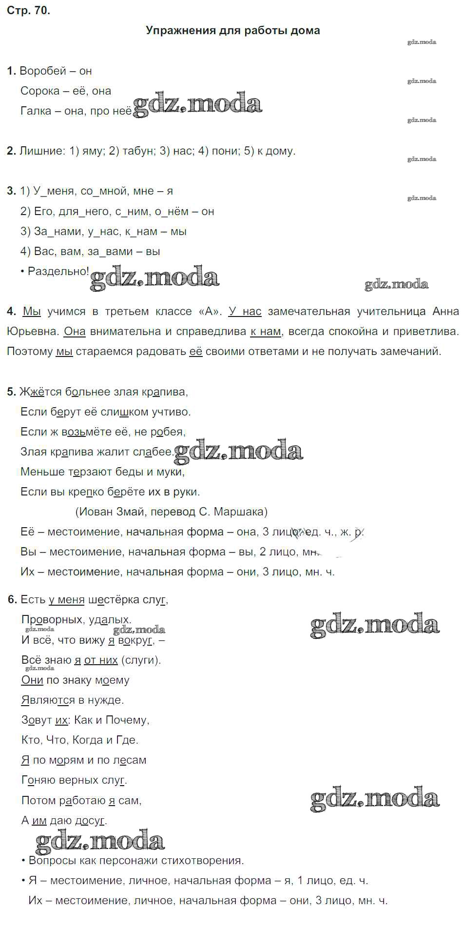 ОТВЕТ на задание № стр.70 Учебник по Русскому языку 3 класс Бунеев Школа 2100
