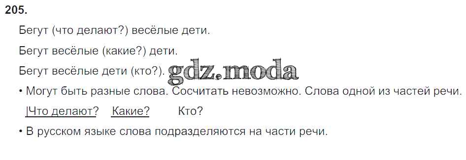 ГДЗ решение к заданию № 205 Русский язык 3 класс Бунеев Р.Н. Баласс 2015 Часть 1, Часть 2 ФГОС бесплатно на гдз.мода!
