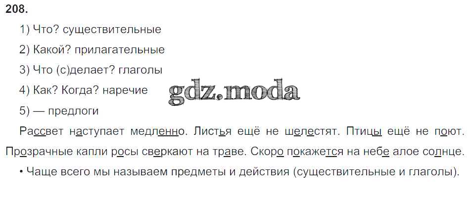 ГДЗ решение к заданию № 208 Русский язык 3 класс Бунеев Р.Н. Баласс 2015 Часть 1, Часть 2 ФГОС бесплатно на гдз.мода!