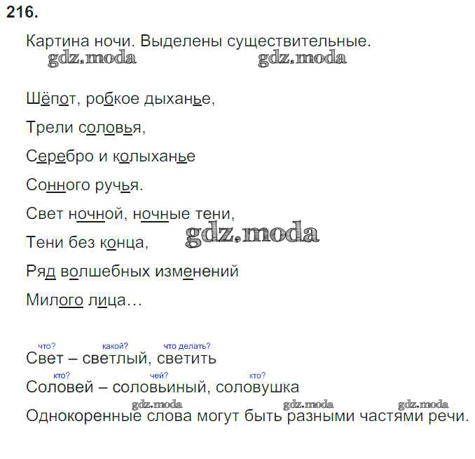 ОТВЕТ на задание № 216 Учебник по Русскому языку 3 класс Бунеев Школа 2100