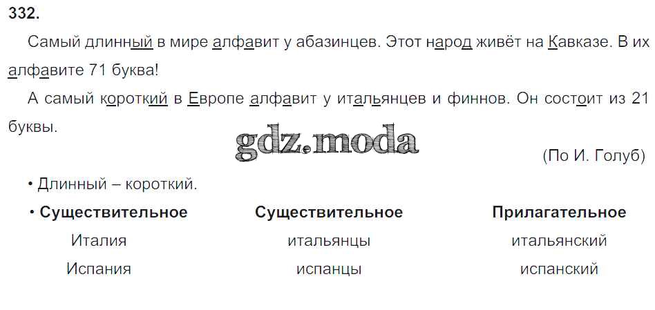ОТВЕТ на задание № 332 Учебник по Русскому языку 3 класс Бунеев Школа 2100