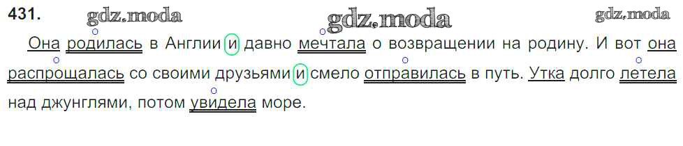 ОТВЕТ на задание № 431 Учебник по Русскому языку 3 класс Бунеев Школа 2100