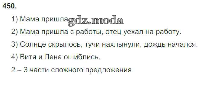ОТВЕТ на задание № 450 Учебник по Русскому языку 3 класс Бунеев Школа 2100
