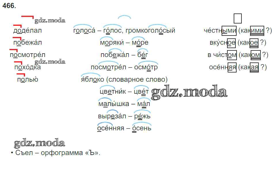 ГДЗ решение к заданию № 466 Русский язык 3 класс Бунеев Р.Н. Баласс 2015 Часть 1, Часть 2 ФГОС бесплатно на гдз.мода!