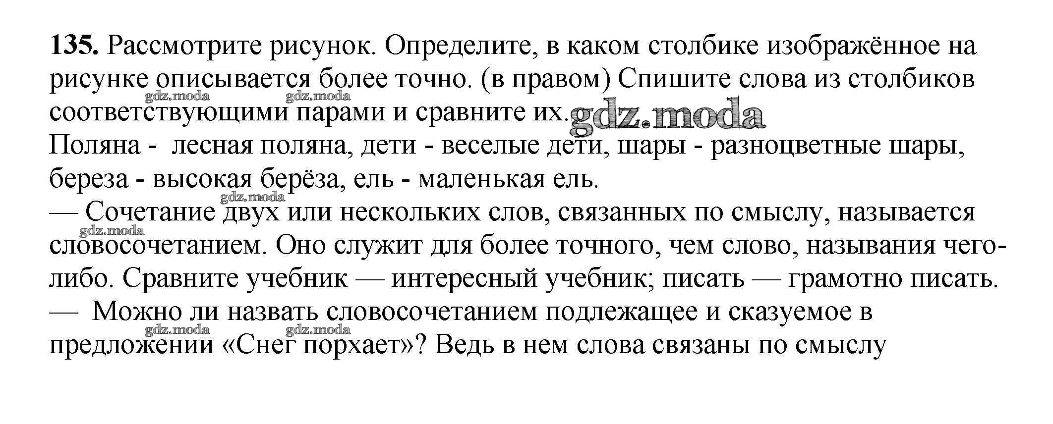 ОТВЕТ на задание № 135 Учебник по Русскому языку 3 класс Климанова Перспектива