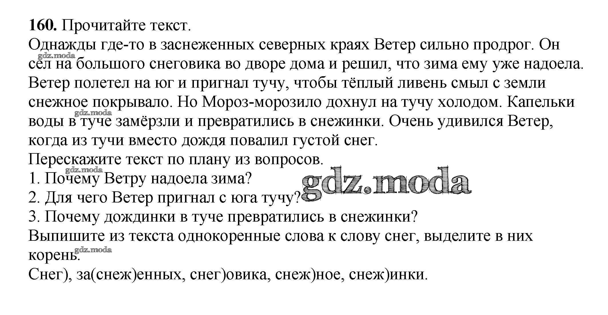 ОТВЕТ на задание № 160 Учебник по Русскому языку 3 класс Климанова Перспектива
