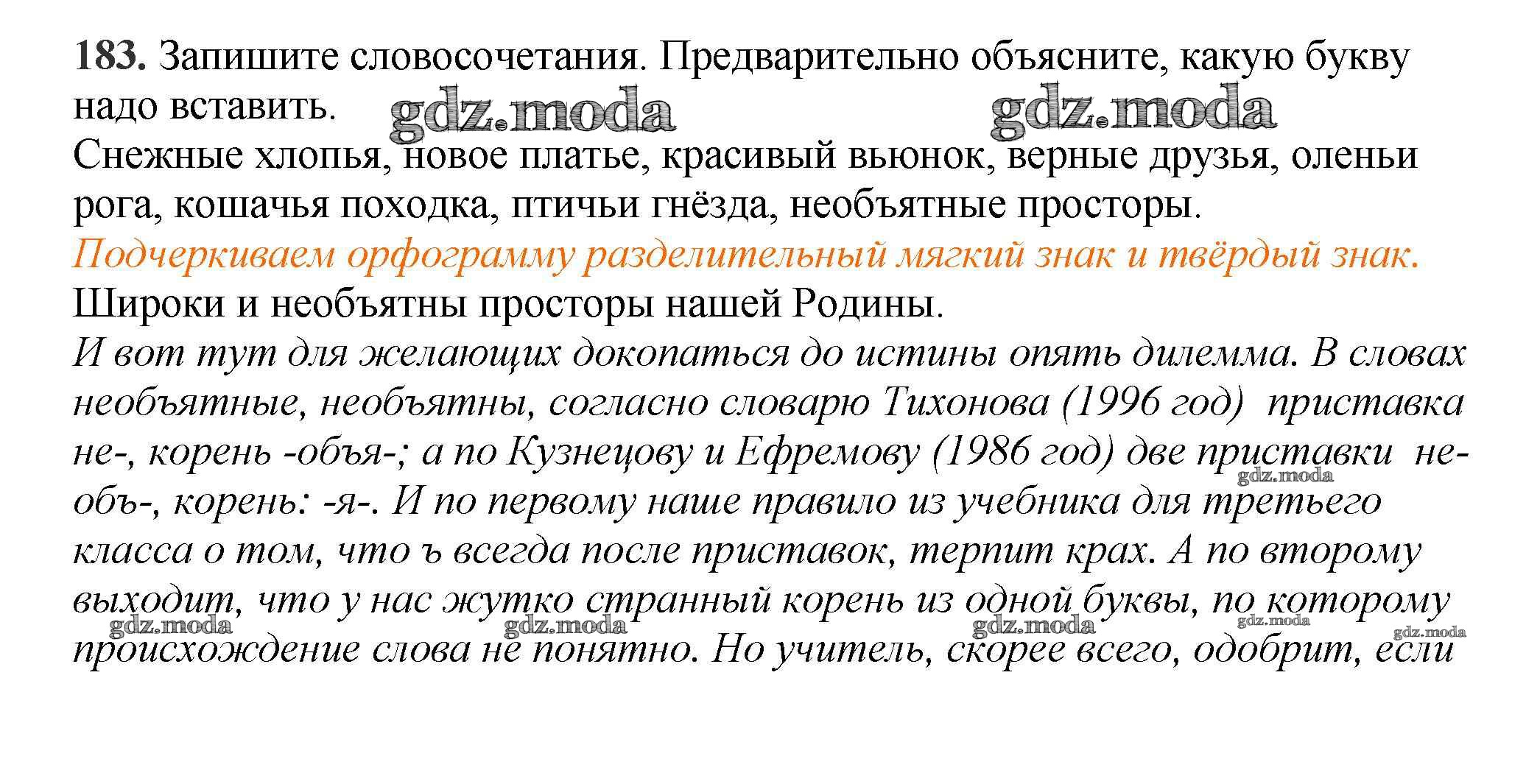 ОТВЕТ на задание № 183 Учебник по Русскому языку 3 класс Климанова Перспектива
