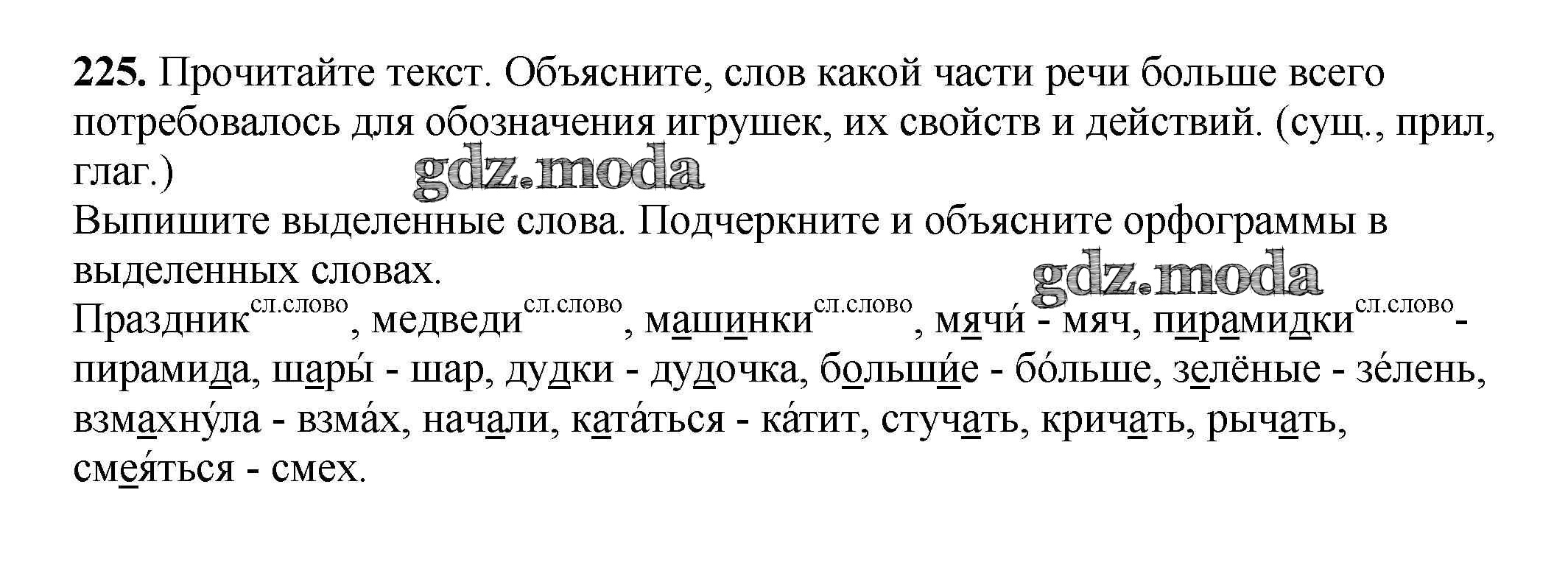 ОТВЕТ на задание № 225 Учебник по Русскому языку 3 класс Климанова Перспектива