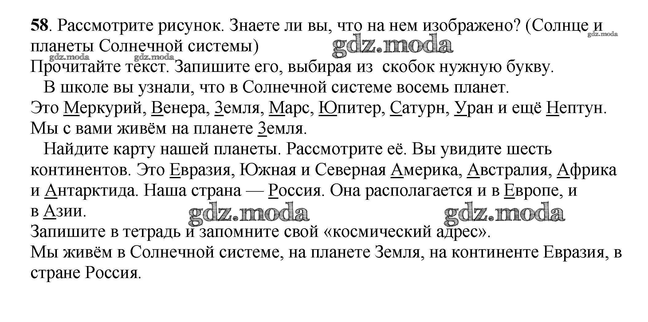 ОТВЕТ на задание № 58 Учебник по Русскому языку 3 класс Климанова Перспектива