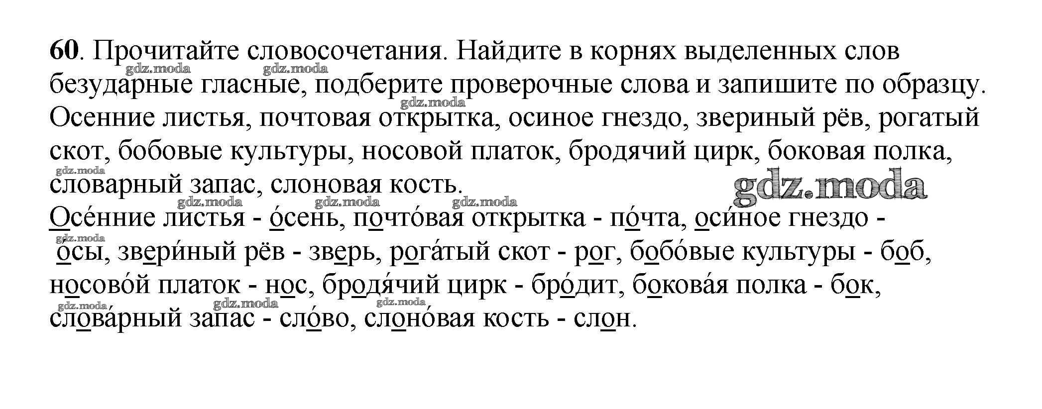 ОТВЕТ на задание № 60 Учебник по Русскому языку 3 класс Климанова Перспектива