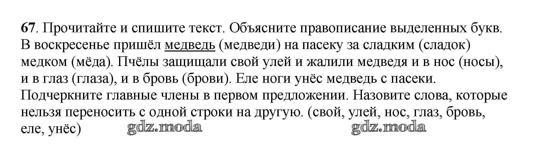 ОТВЕТ на задание № 67 Учебник по Русскому языку 3 класс Климанова Перспектива