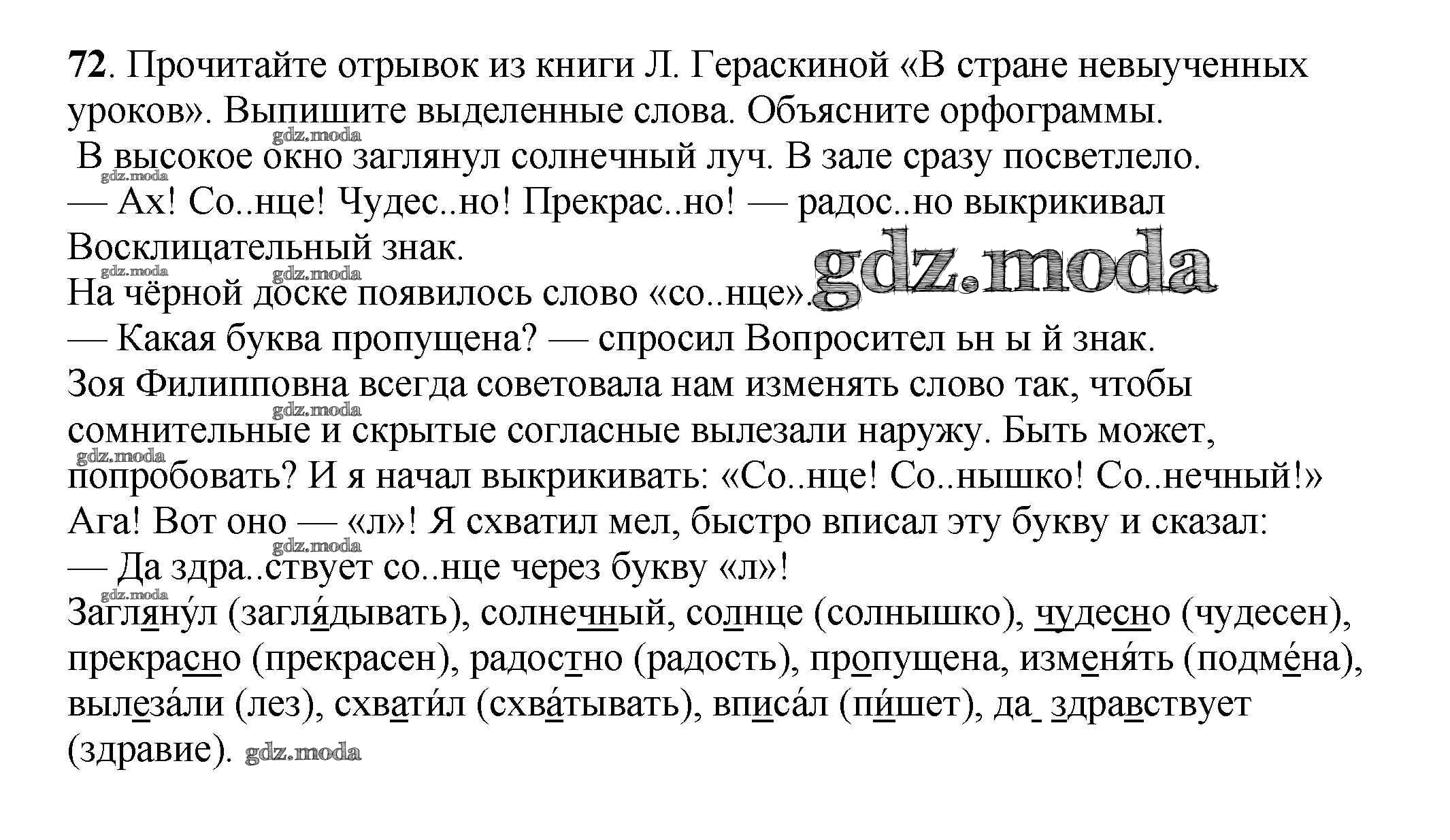 ОТВЕТ на задание № 72 Учебник по Русскому языку 3 класс Климанова Перспектива
