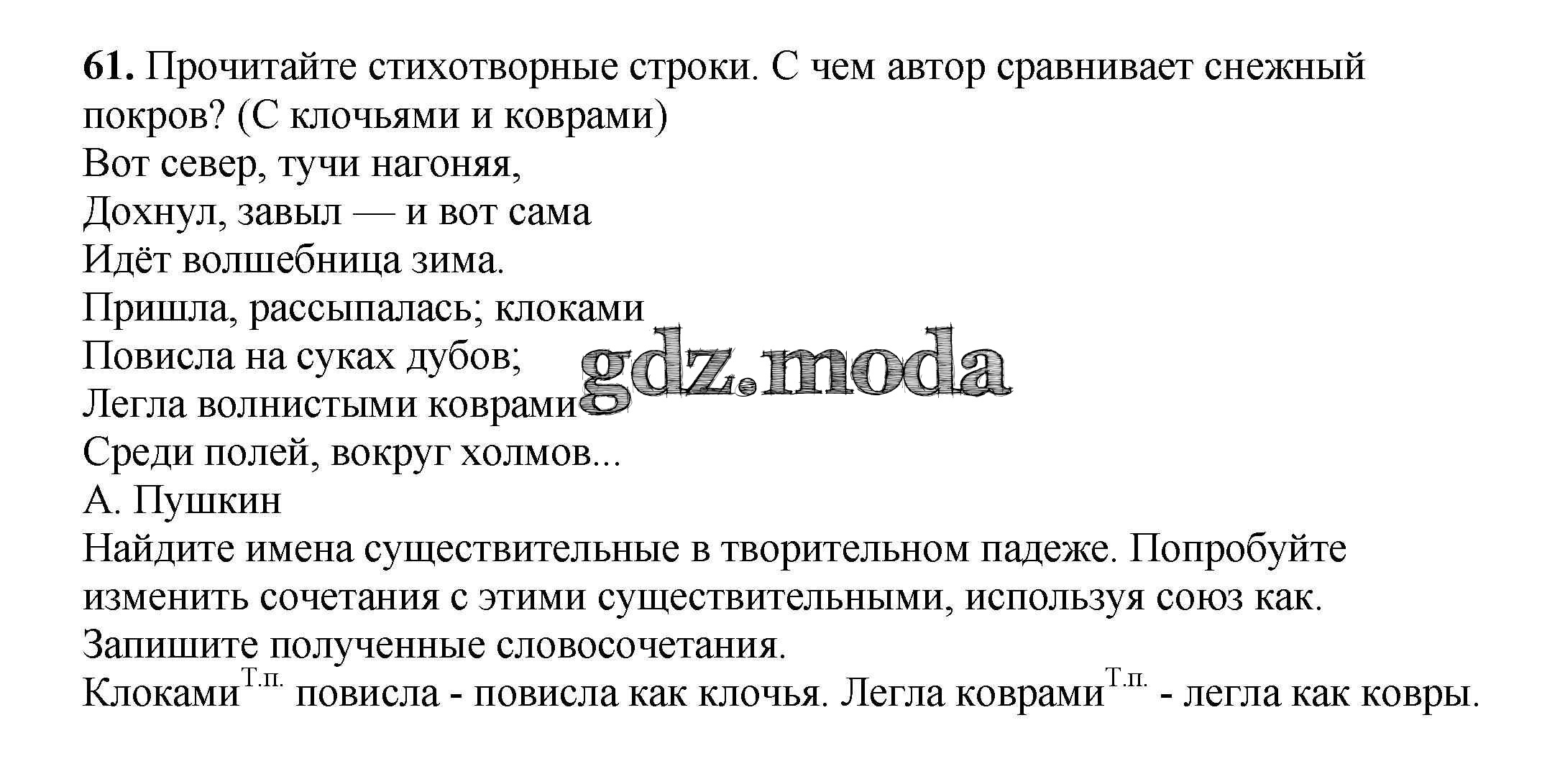 ОТВЕТ на задание № 61 Учебник по Русскому языку 3 класс Климанова Перспектива