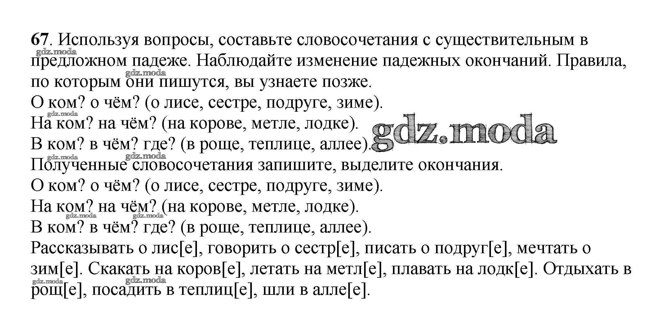 ОТВЕТ на задание № 67 Учебник по Русскому языку 3 класс Климанова Перспектива