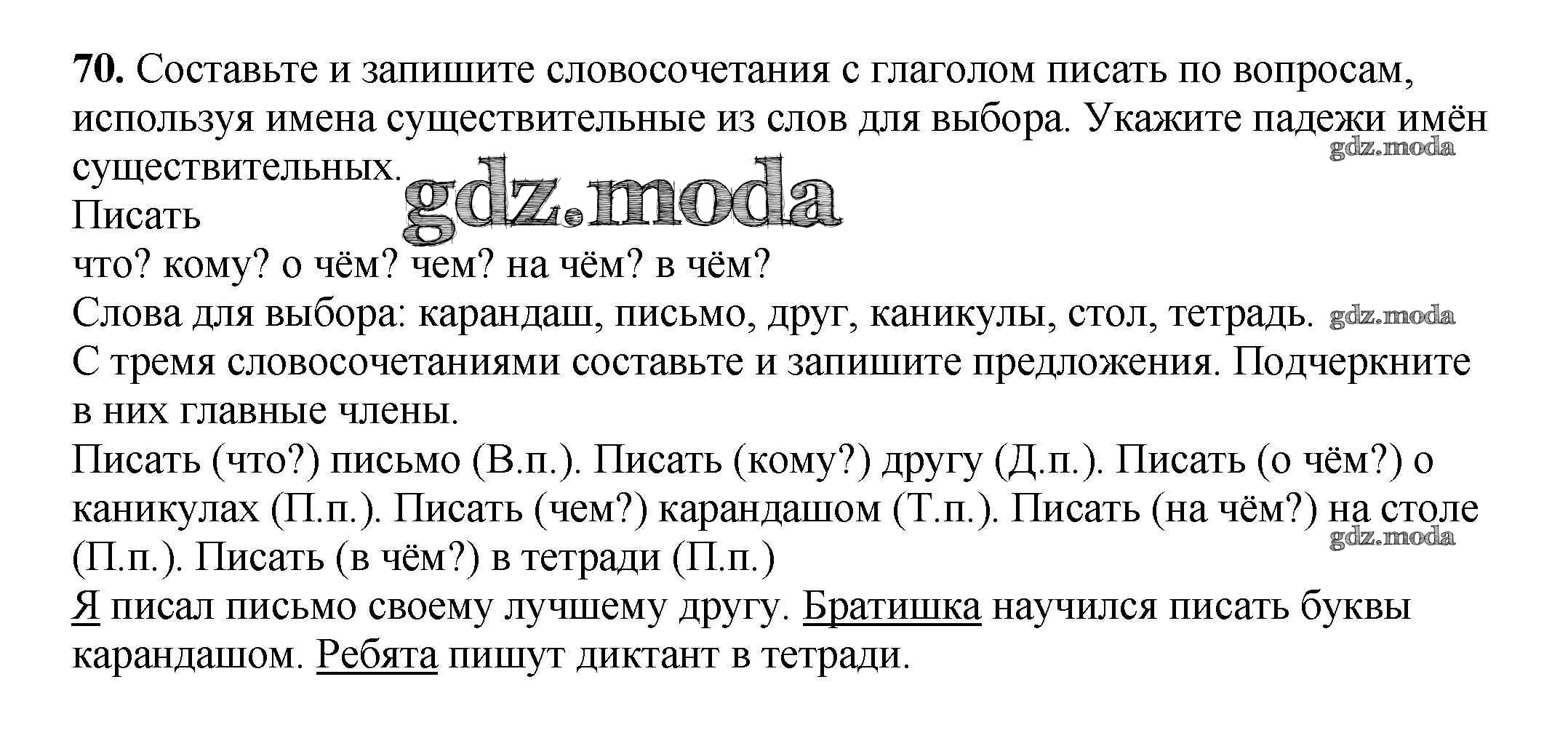 ОТВЕТ на задание № 70 Учебник по Русскому языку 3 класс Климанова Перспектива