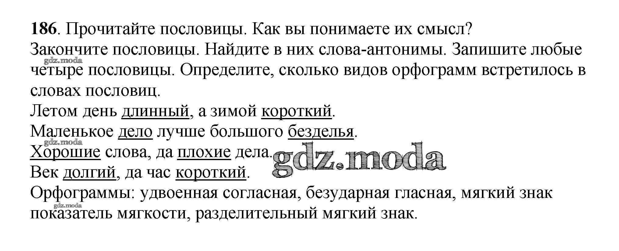 ГДЗ решение к заданию № 186 Русский язык 3 класс Климанова Л.Ф. Просвещение 2014 Часть 1, Часть 2 ФГОС бесплатно на гдз.мода!