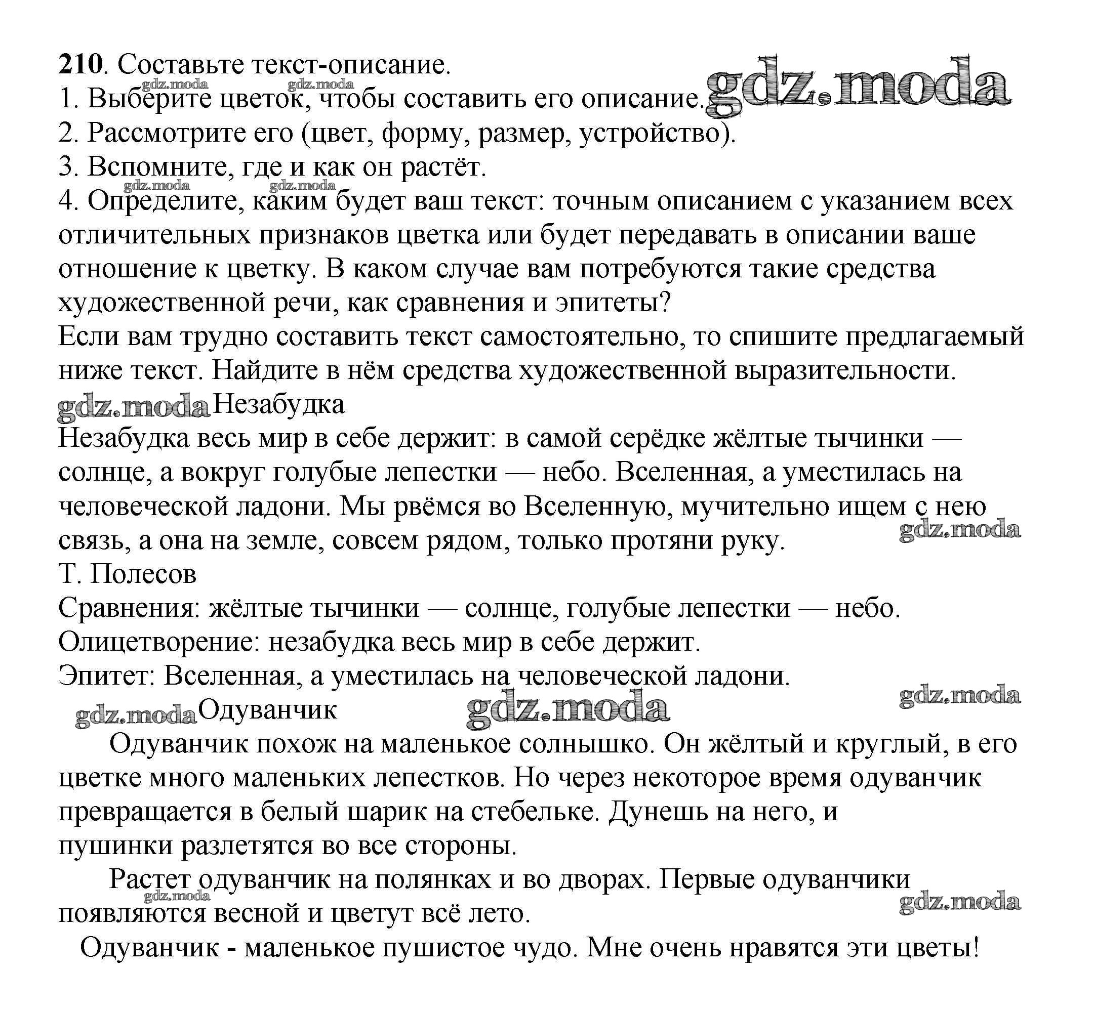 ОТВЕТ на задание № 210 Учебник по Русскому языку 3 класс Климанова Перспектива