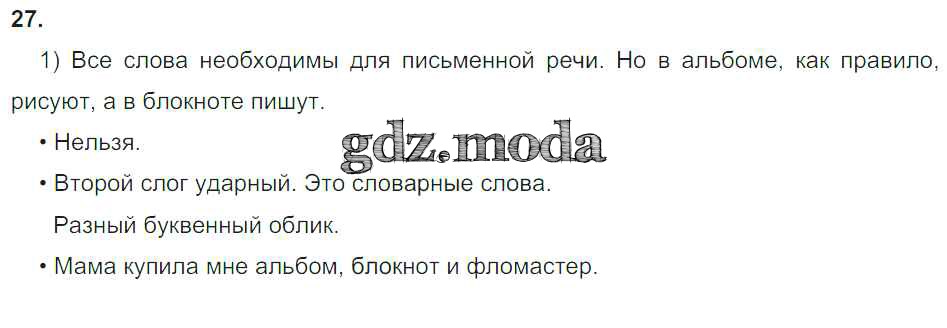 ГДЗ решение к заданию № 27 Русский язык 3 класс Желтовская Л.Я. Аст/Астрель 2013 Часть 1, Часть 2 ФГОС бесплатно на гдз.мода!