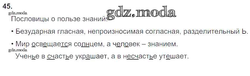 ГДЗ решение к заданию № 45 Русский язык 3 класс Желтовская Л.Я. Аст/Астрель 2013 Часть 1, Часть 2 ФГОС бесплатно на гдз.мода!