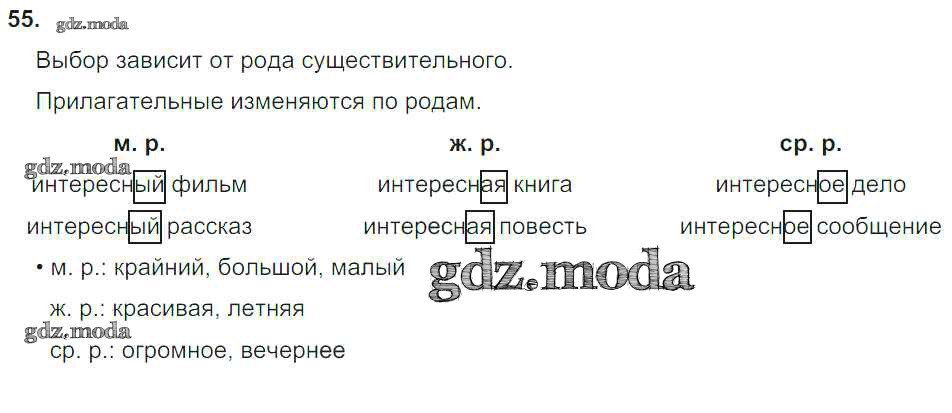 ОТВЕТ на задание № 55 Учебник по Русскому языку 3 класс Желтовская Планета знаний