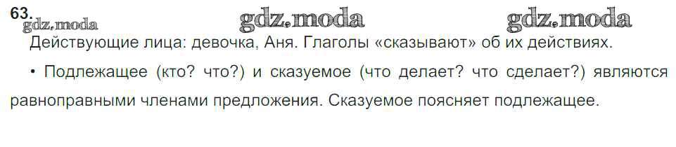 ОТВЕТ на задание № 63 Учебник по Русскому языку 3 класс Желтовская Планета знаний