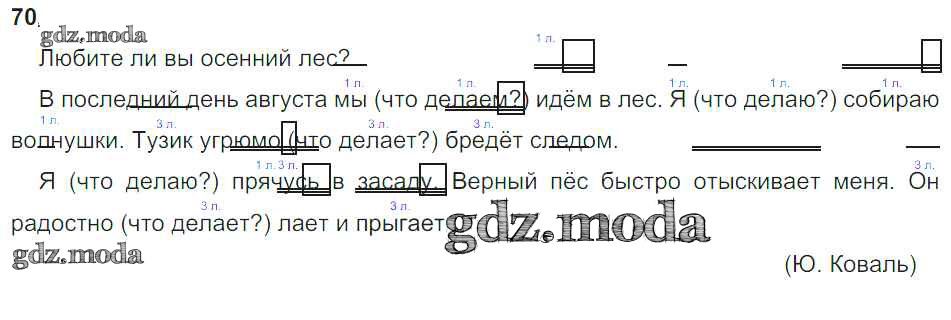 ГДЗ решение к заданию № 70 Русский язык 3 класс Желтовская Л.Я. Аст/Астрель 2013 Часть 1, Часть 2 ФГОС бесплатно на гдз.мода!