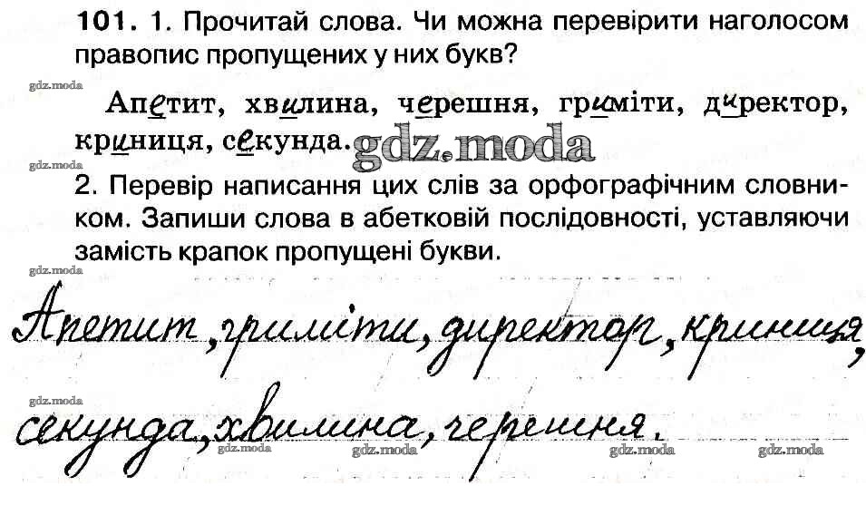 ГДЗ решение к заданию № 101 Украинский язык 3 класс рабочая тетрадь Вашуленко Освiта 2014 бесплатно на гдз.мода!
