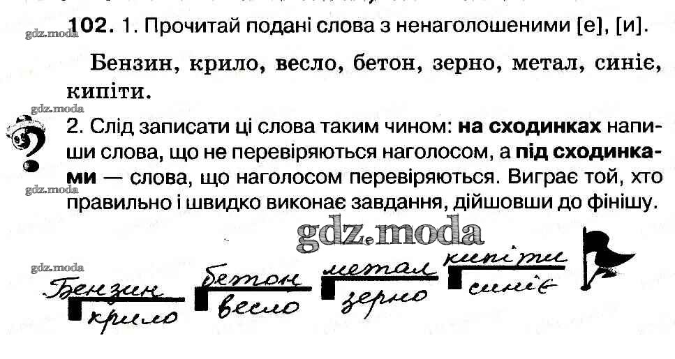 ГДЗ решение к заданию № 102 Украинский язык 3 класс рабочая тетрадь Вашуленко Освiта 2014 бесплатно на гдз.мода!
