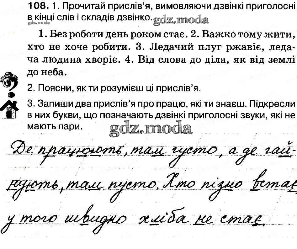 ГДЗ решение к заданию № 108 Украинский язык 3 класс рабочая тетрадь Вашуленко Освiта 2014 бесплатно на гдз.мода!