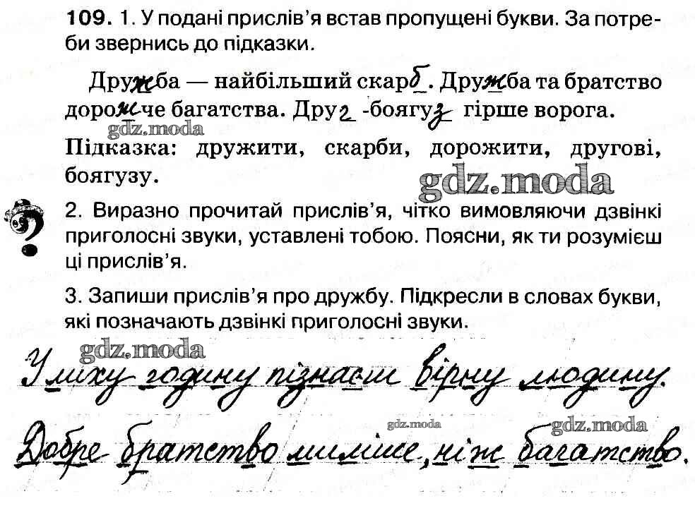 ГДЗ решение к заданию № 109 Украинский язык 3 класс рабочая тетрадь Вашуленко Освiта 2014 бесплатно на гдз.мода!
