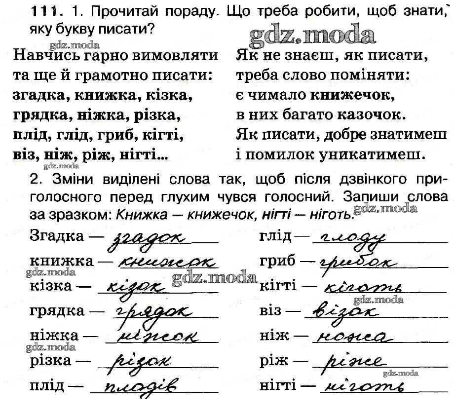 ГДЗ решение к заданию № 111 Украинский язык 3 класс рабочая тетрадь Вашуленко Освiта 2014 бесплатно на гдз.мода!