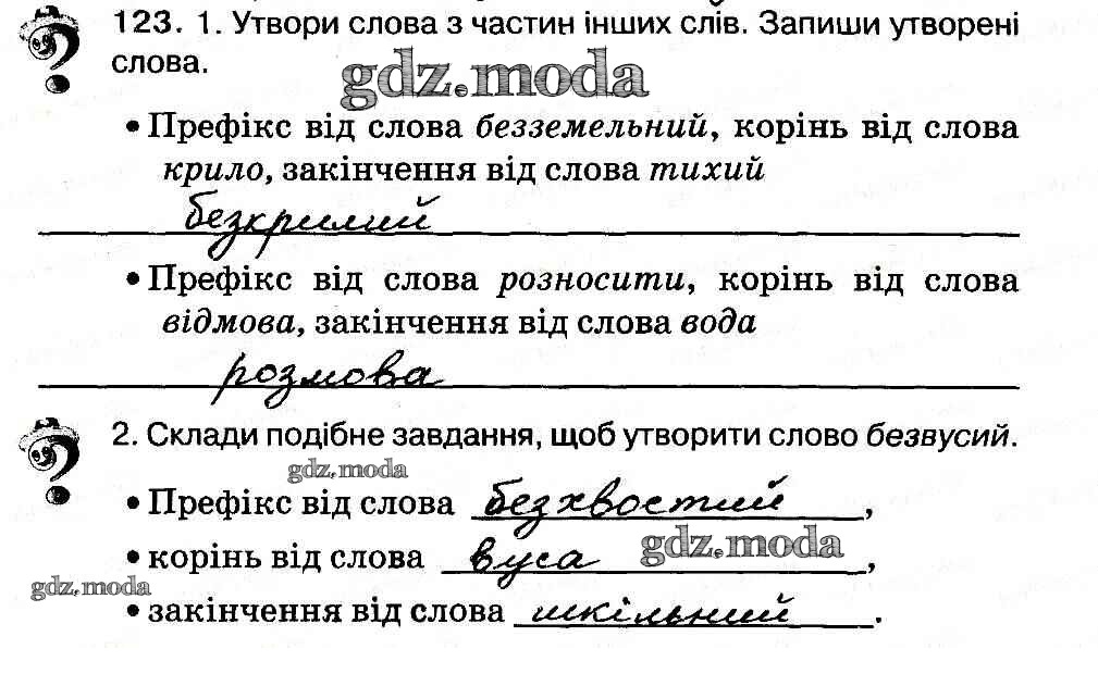 ГДЗ решение к заданию № 123 Украинский язык 3 класс рабочая тетрадь Вашуленко Освiта 2014 бесплатно на гдз.мода!