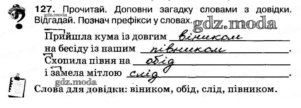 ГДЗ решение к заданию № 127 Украинский язык 3 класс рабочая тетрадь Вашуленко Освiта 2014 бесплатно на гдз.мода!