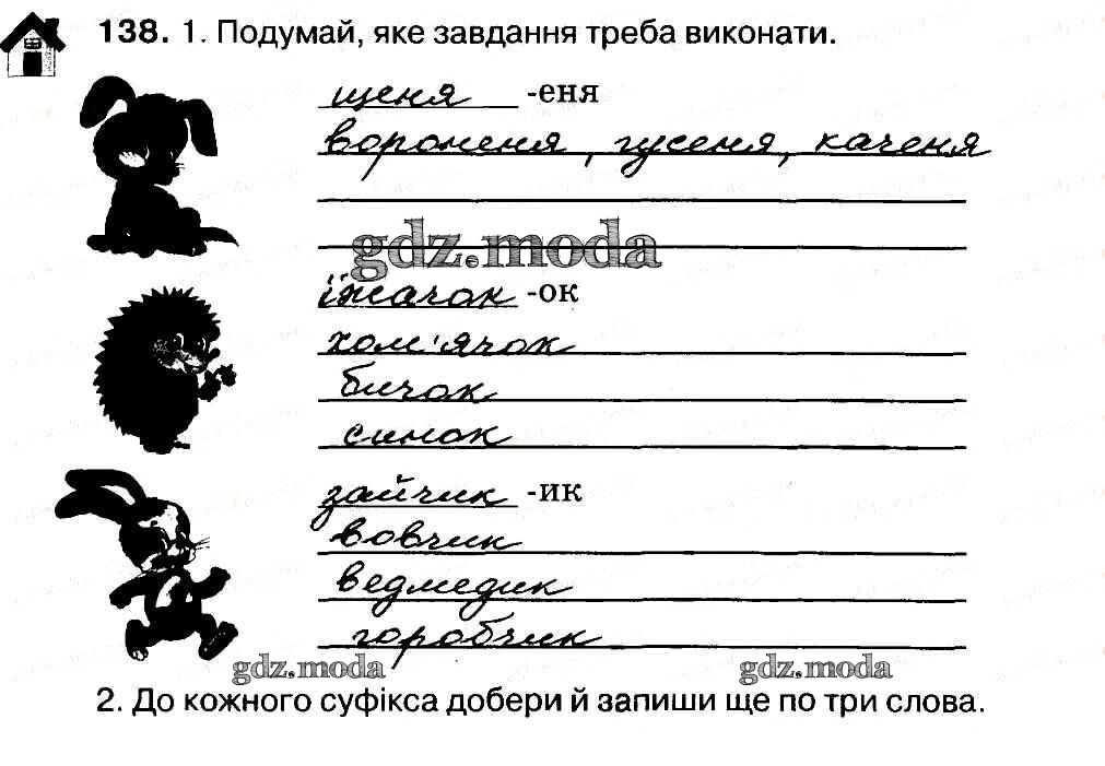 ГДЗ решение к заданию № 138 Украинский язык 3 класс рабочая тетрадь Вашуленко Освiта 2014 бесплатно на гдз.мода!