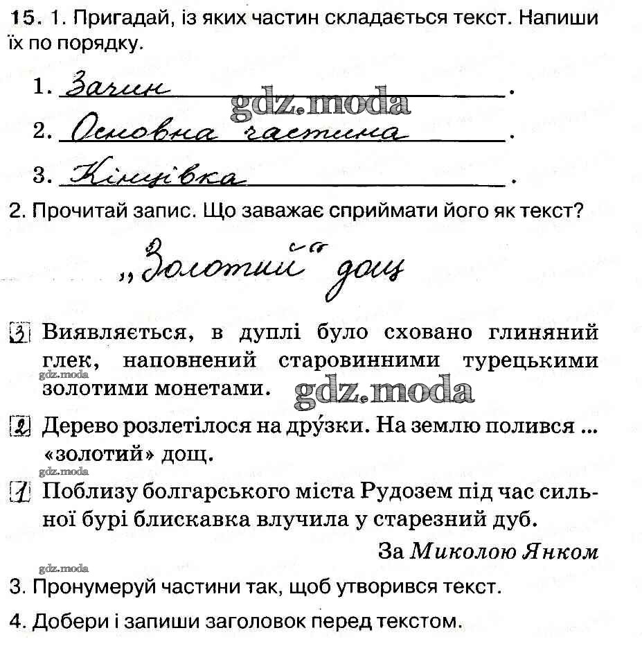 ГДЗ решение к заданию № 15 Украинский язык 3 класс рабочая тетрадь Вашуленко Освiта 2014 бесплатно на гдз.мода!