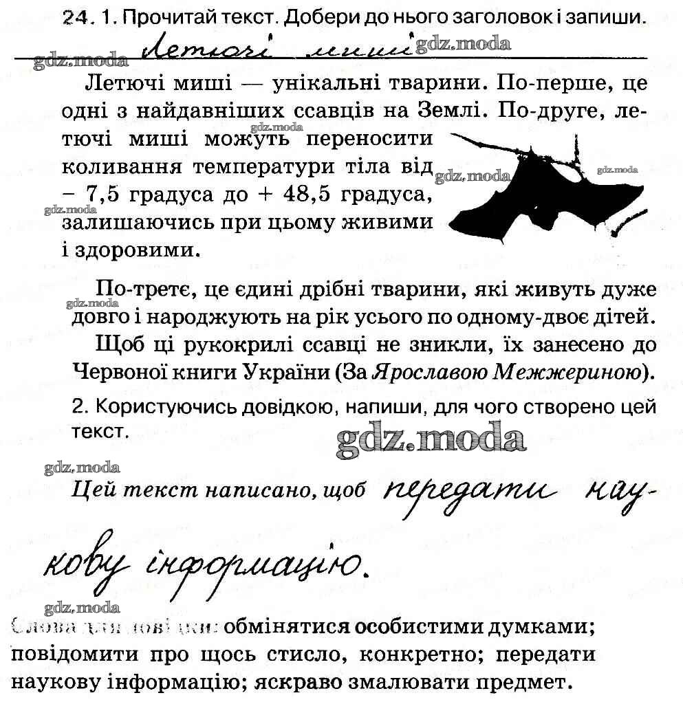 ГДЗ решение к заданию № 24 Украинский язык 3 класс рабочая тетрадь Вашуленко Освiта 2014 бесплатно на гдз.мода!