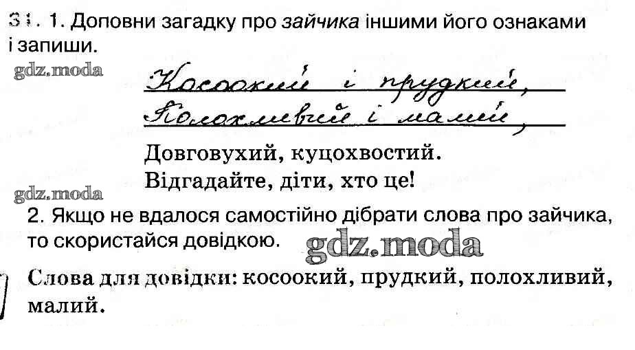 ГДЗ решение к заданию № 31 Украинский язык 3 класс рабочая тетрадь Вашуленко Освiта 2014 бесплатно на гдз.мода!